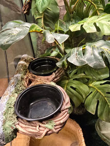 Geckos primarily drink from the water droplet on tank walls and plant leaves; however, always provide fresh clean water for your gecko! For humidity, mist the cage at night to bring the humidity up to around 80% and then let the tank humidity drop during the day to around 50%. This routine best mimics their natural environment. Too much humidity can result in bacteria and mold, while insufficient humidity can lead to dehydration, sunken eyes, and poor shedding. So, monitor their humidity. Digital humidity/temperature gages are considered the most accurate, but the stick on non-digital versions also work. The downside is they cannot easily be moved or transferred between tanks. Automatic misters (on timers) save a lot of work and keep the geckos misted if we have to be away for a night. A basic spray bottle will also suffice. In Colorado, where it is very dry, placing a piece of Plexiglas over half to three quarters of the screen top helps to retain the humidity.
